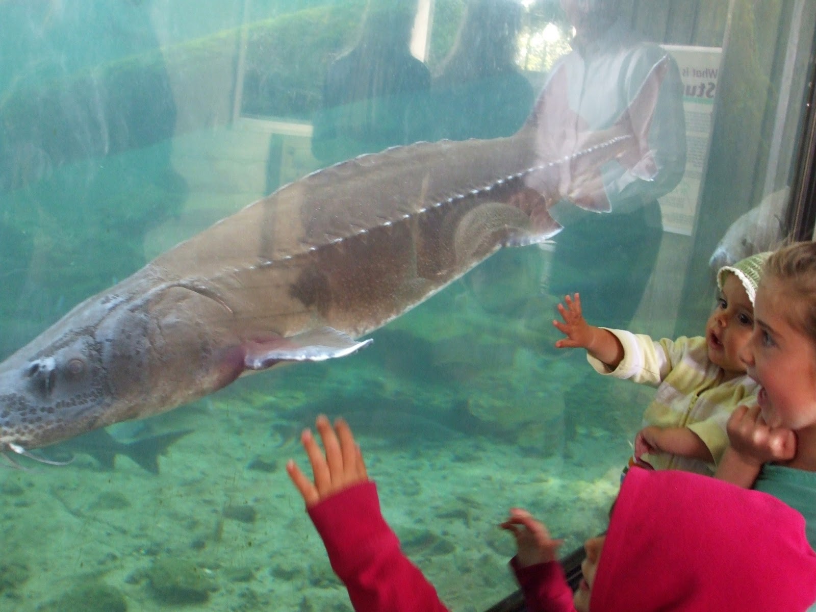 We picked up a Self-Tour Brochure at Bonneville Fish Hatchery and entered the Egg Incubation Building. Salmon eggs are incubated here starting in October. Next we watched various sized trout and sturgeon swimming around in the White Sturgeon Pond and Enclosed Viewing Center."Hermon the Sturgeon" is over 10 ft long, over 450 pounds, & over 70 years old!