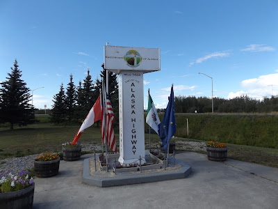 These two girls love the signs to stick your head through. Meg is as good at spotting them as she is at finding playgrounds! The thermometer display at the Tok visitors center said the town's record high was 92* and record low was -85*.